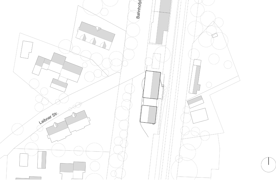 Der Erweiterungsbau als fließendes Verbindungselement zwischen Bahnhofsgebäude und Schuppen soll sich in Firsthöhe, Dachneigung und Breite unaufdringlich, unaufgeregt und doch zeitgenössisch, ästhetisch in das Erscheinungsbild des Ortes einfügen. Die verbauten Materialien würdigen seine Umgebung und dessen Geschichte - so nehmen die Holztore mit Stahlrahmen die Ästhetik von Güterwaggons auf, der dunkle Putz des Neubaus erinnert an die ehemals vom Ruß geschwärzten Fassaden aus der Ära der Dampflock (die im Übrigen noch heute traditionell jeden Sommer von Utting nach Augsburg ruckelt und jährlich Schaulustige wie Liebhaber*innen aller Altersklassen anzieht).